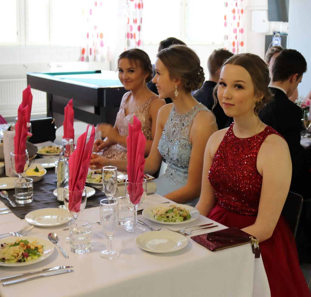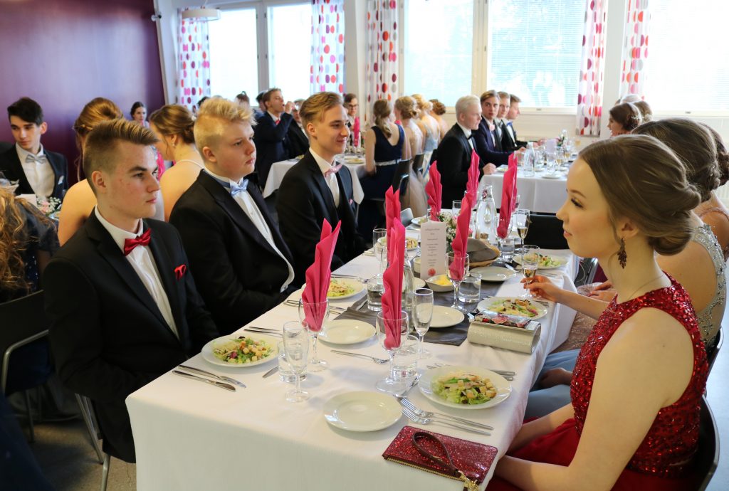 Vanhojen päivä päättyi lukion henkilökunnan ja vanhojen yhteiseen kolmen ruokalajin juhlalounaaseen.